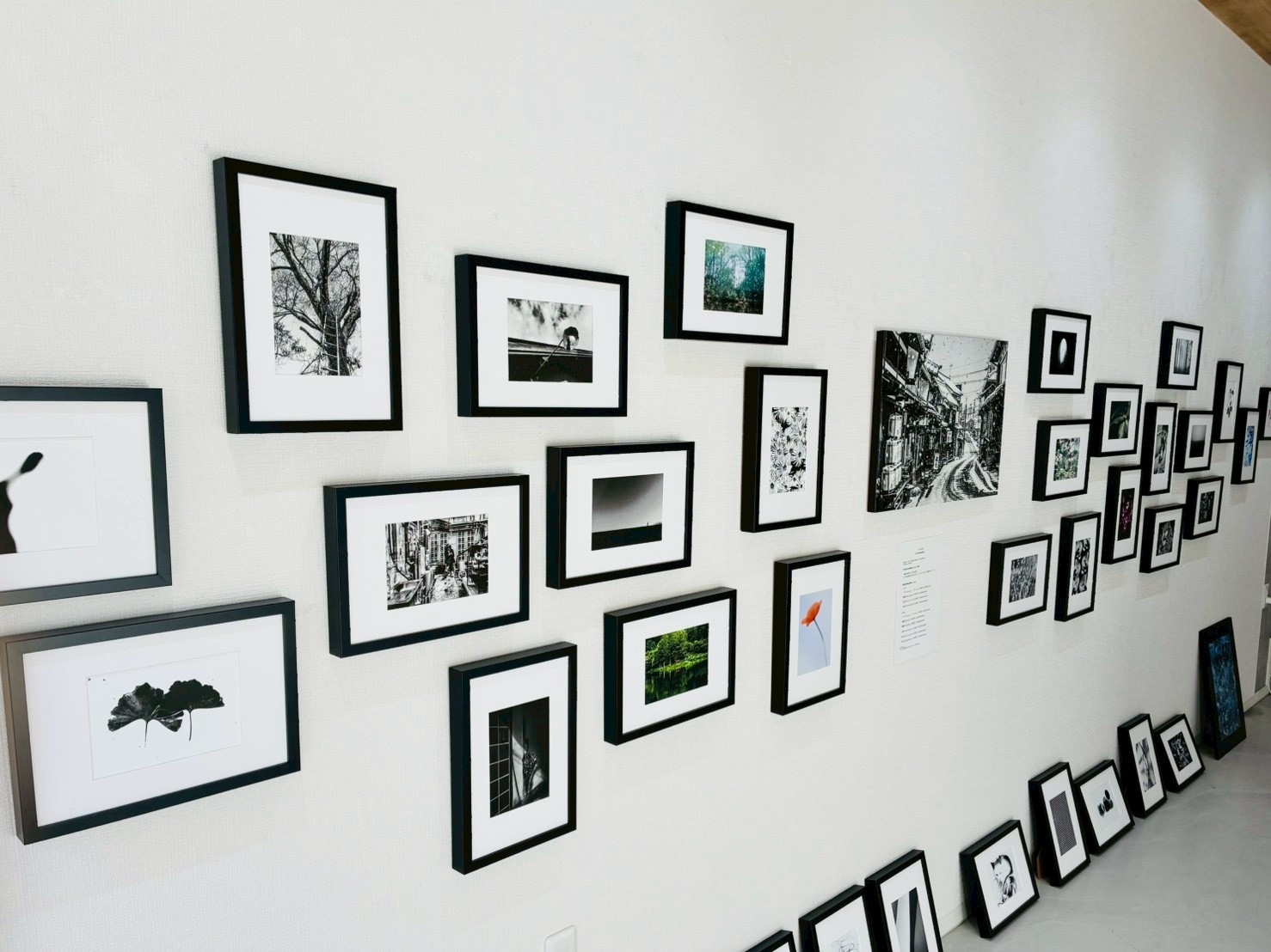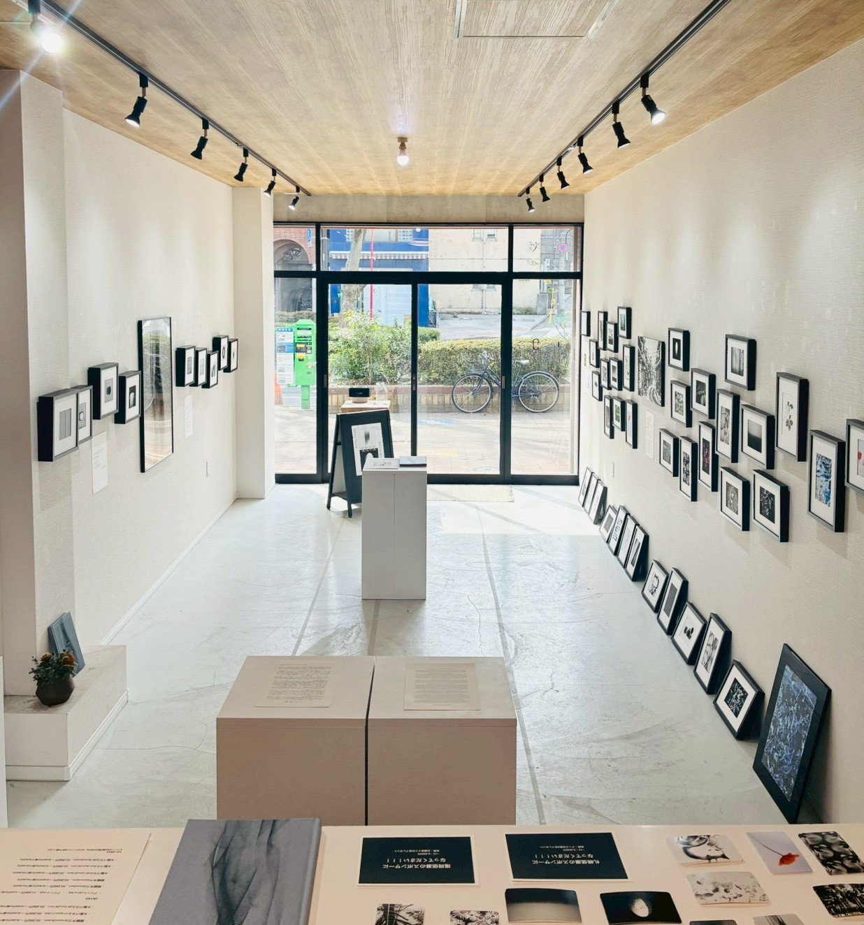 壁面に無造作に並ぶ作品と、あえて床に置かれた作品とのバランスが心地よく、ギャラリー空間全体が一つのインスタレーションのように機能していました。