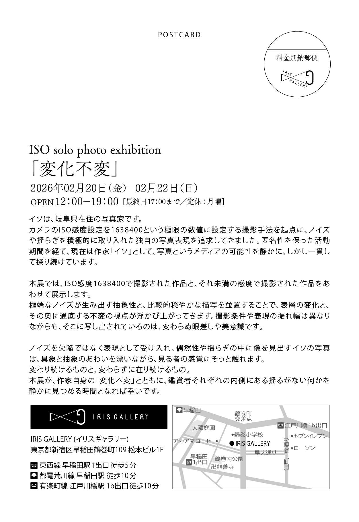 IRIS GALLERYではこれからも、写真の豊かさに目を向けながら、多様な表現の在り方を探求してまいります。